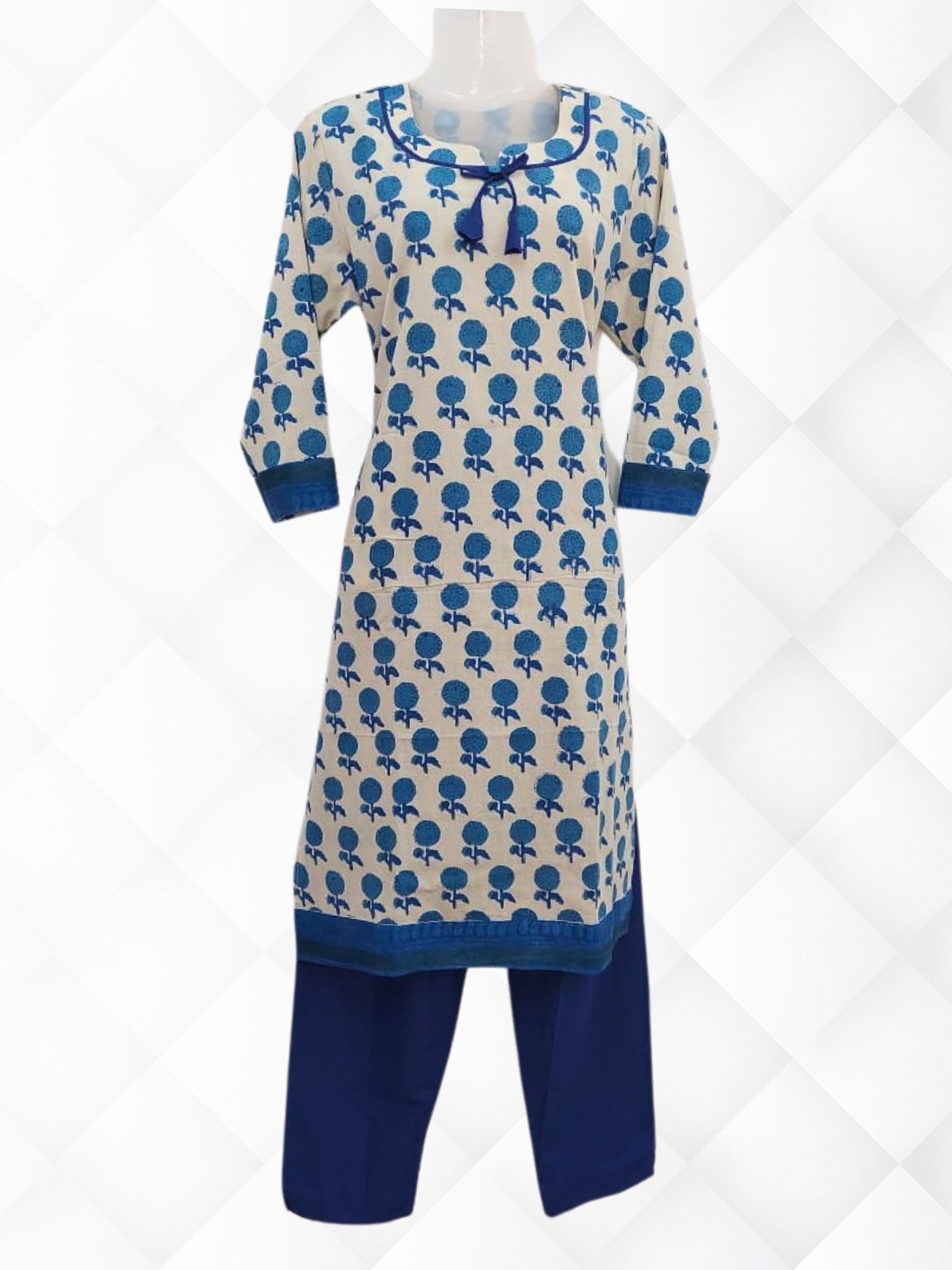 DISCLAIMER: In the artful process of hand block-printing, embroidery work and stitching, variations are likely to come into existence. These irregularities are the hallmark of all handmade products and give each style a unique identity.