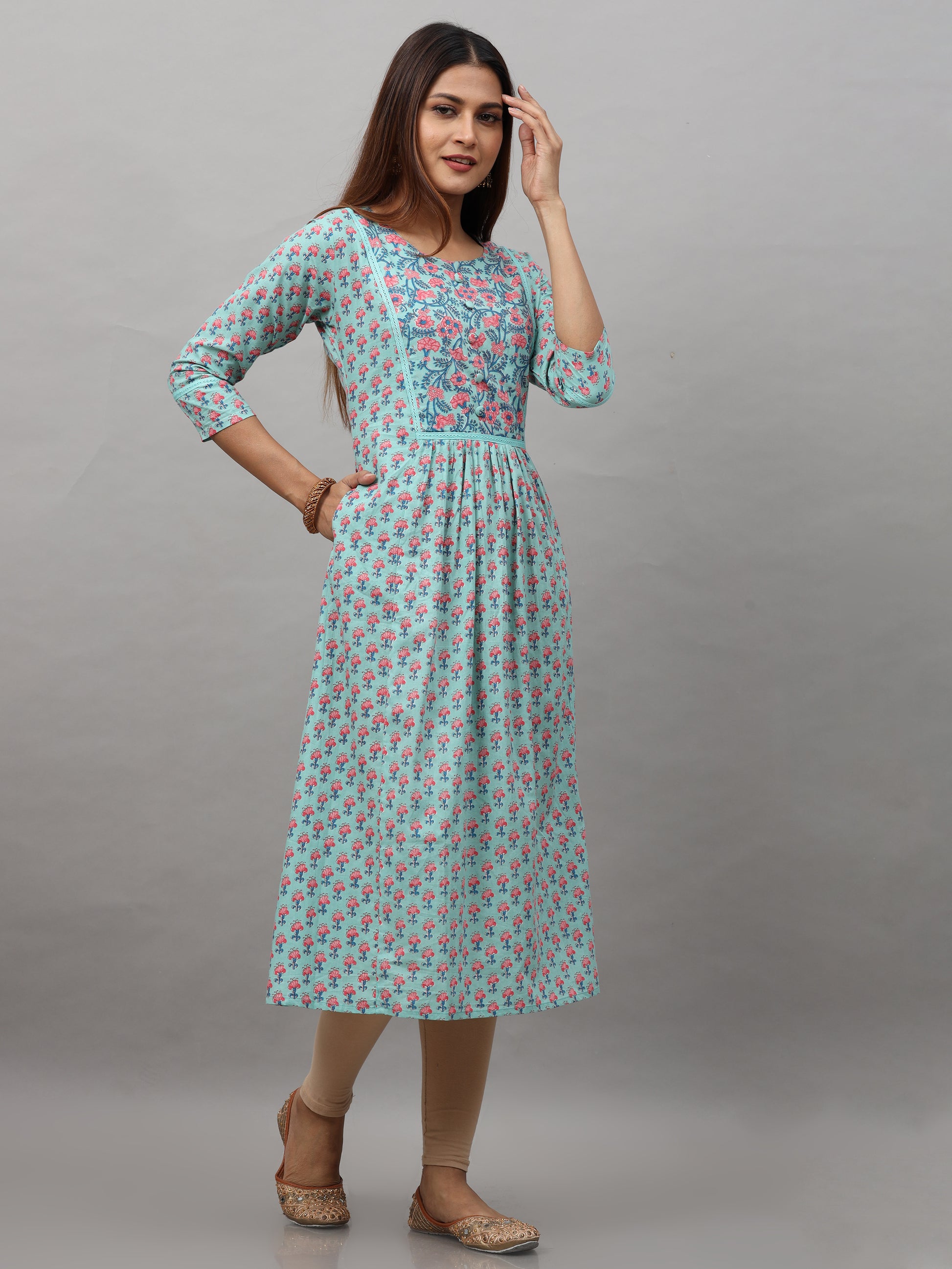 DISCLAIMER: In the artful process of hand block-printing, embroidery work and stitching, variations are likely to come into existence. These irregularities are the hallmark of all handmade products and give each style a unique identity.