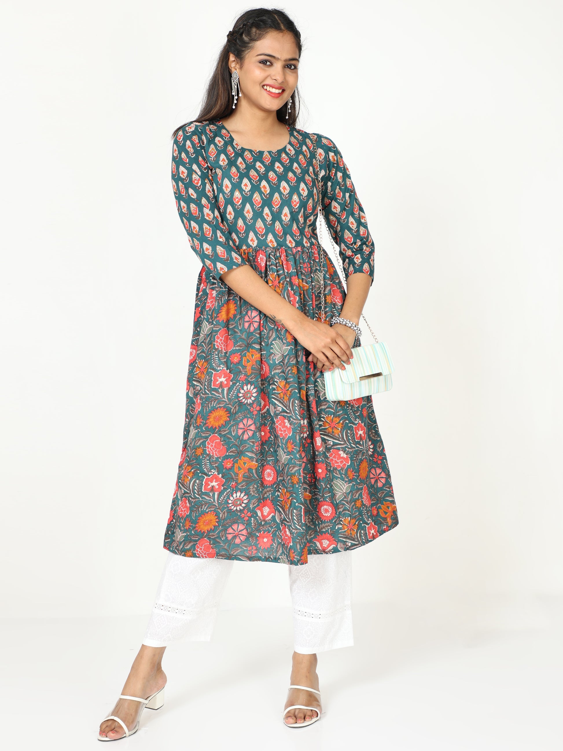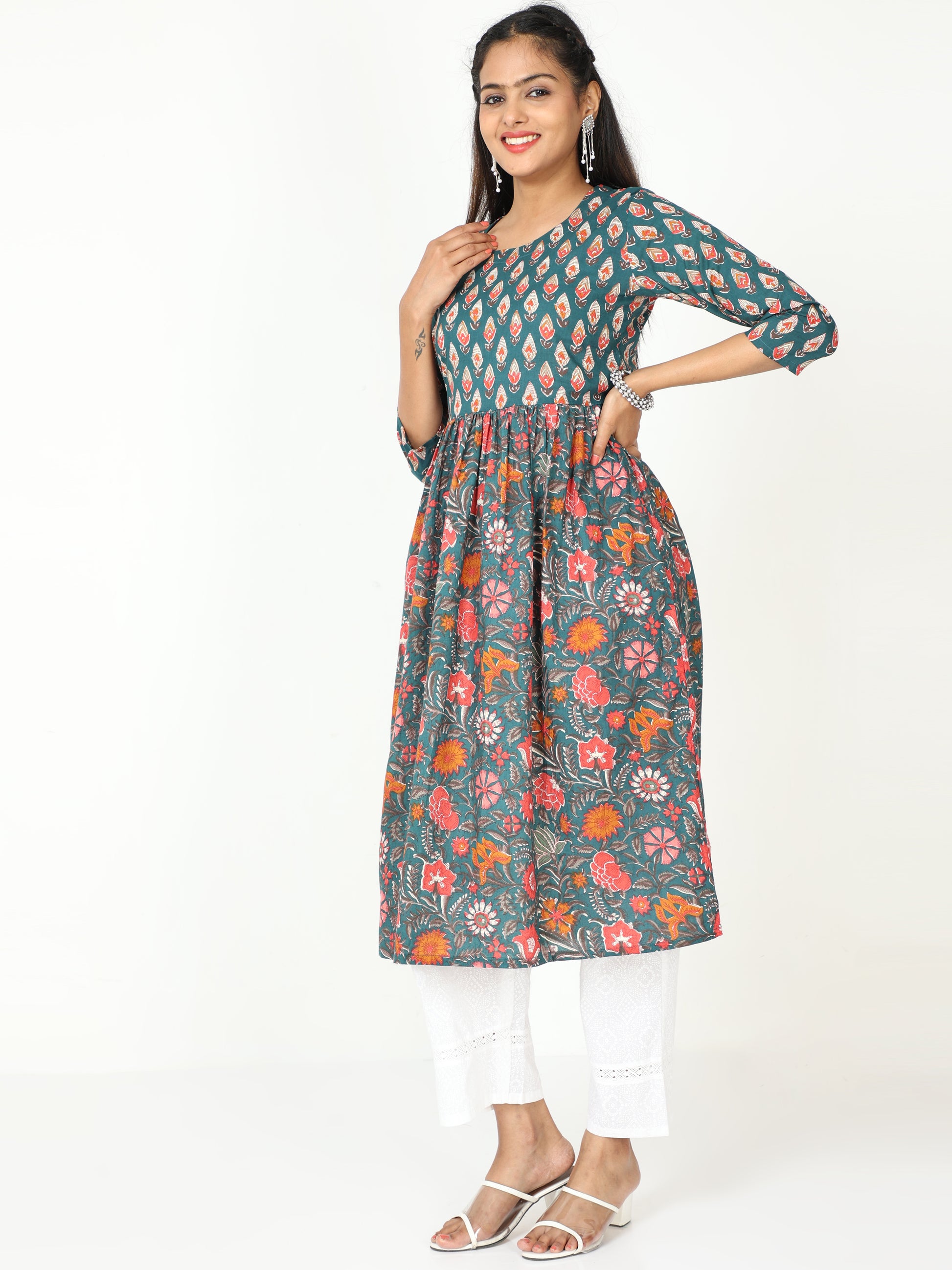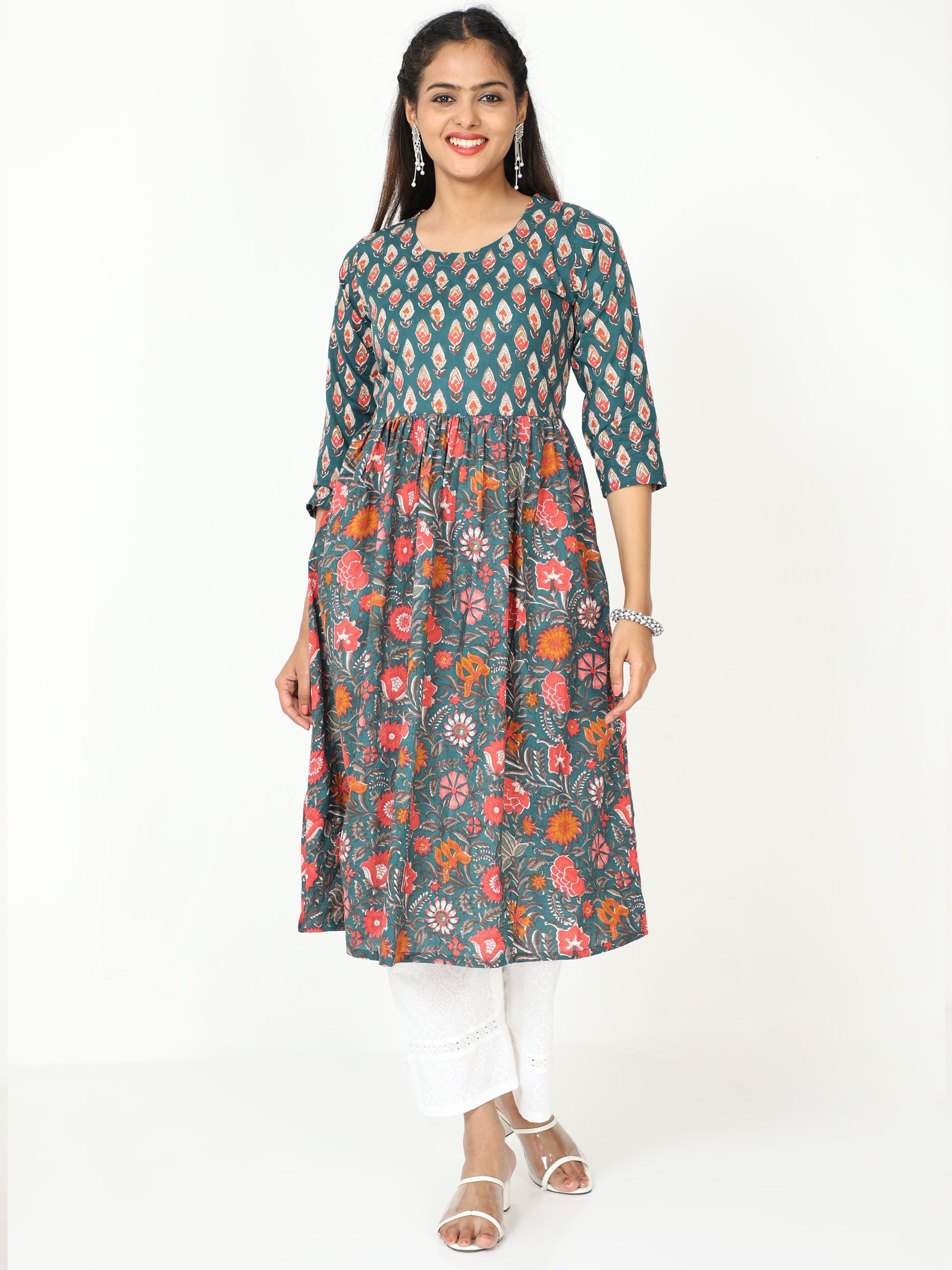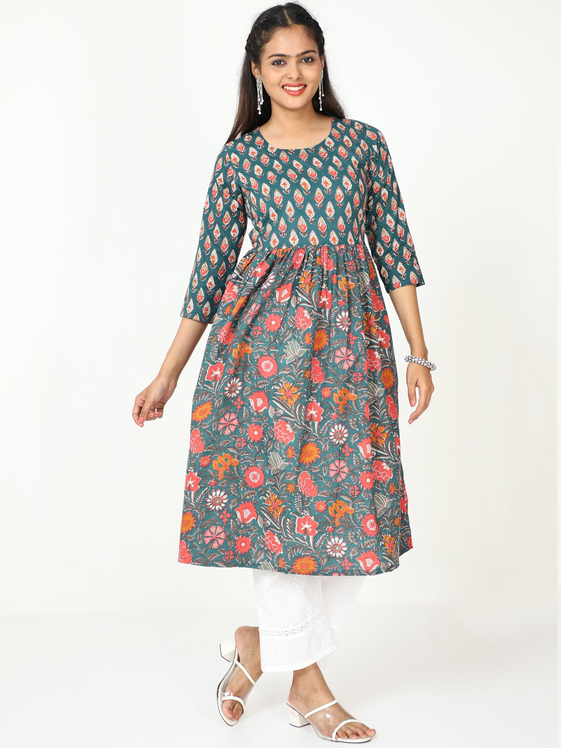 DISCLAIMER: In the artful process of hand block-printing, embroidery work and stitching, variations are likely to come into existence. These irregularities are the hallmark of all handmade products and give each style a unique identity.