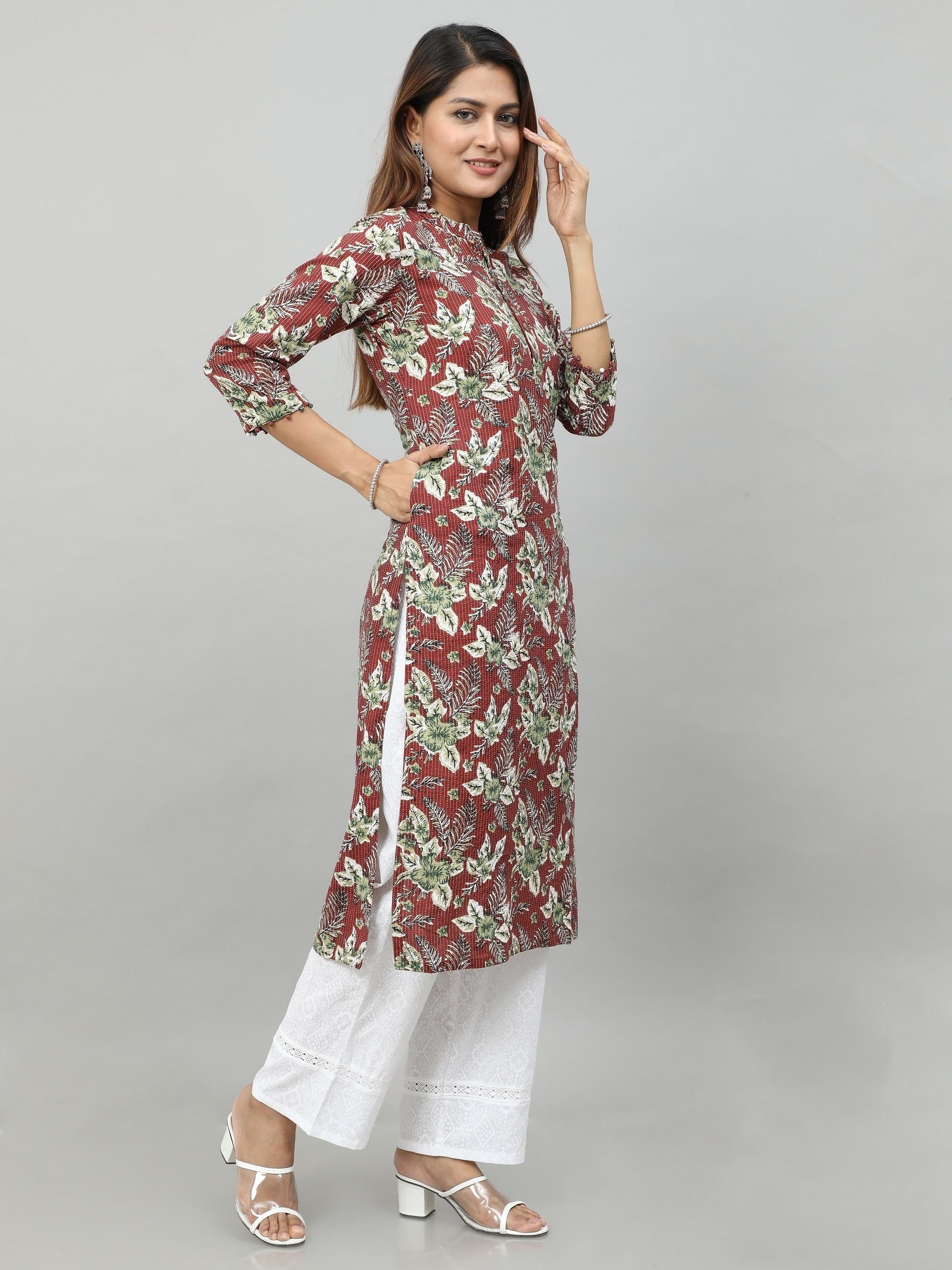Cotton Kantha Printed Long Kurta